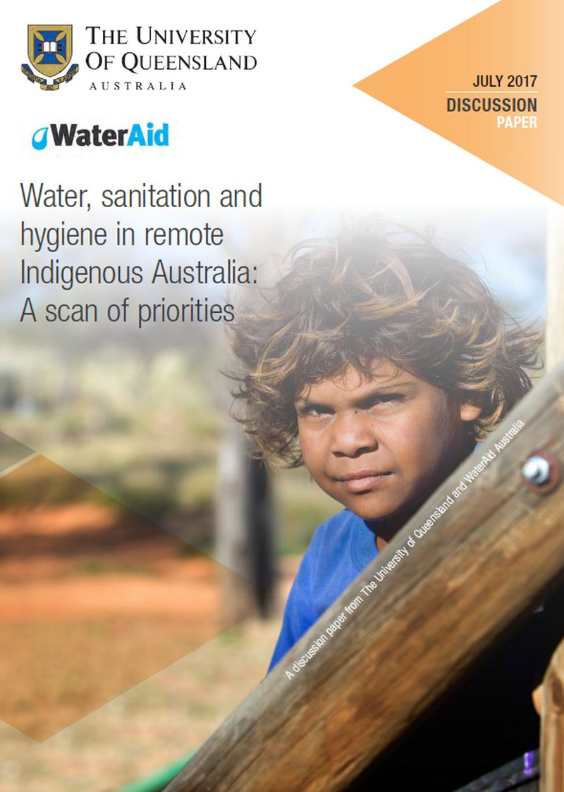 Hall, N., Barbosa, M.C., Currie, D., Dean, A.J., Head, B., Hill, P.S., Naylor, S., Reid, S., Selvey, L., and Willis, J. (2017). Water, sanitation and hygiene in remote Indigenous Australia A scan of priorities The University of Queensland