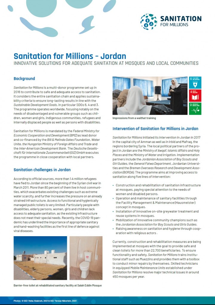 Sanitation for Millions is a multi-donor programme set up in 2016 to contribute to safe and adequate access to sanitation. It considers the entire sanitation chain and applies sustainability criteria to ensure long-lasting results in line with the Sustainable Development Goals, in particular SDGs 6, 4 and 3. The programme operates worldwide, focusing notably on the needs of disadvantaged and vulnerable groups such as children, […]