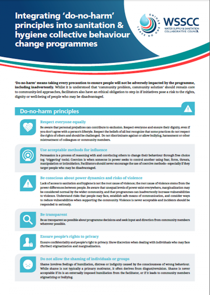 ‘Do-no-harm’ means taking every precaution to ensure people will not be adversely impacted by the programme, including inadvertently. Whilst it is understood that ‘community problem, community solution’ should remain core to community-led approaches, facilitators also have an ethical obligation to step in if initiatives pose a risk to the rights, dignity or well-being of people who may be disadvantaged. For a more in-depth read on […]
