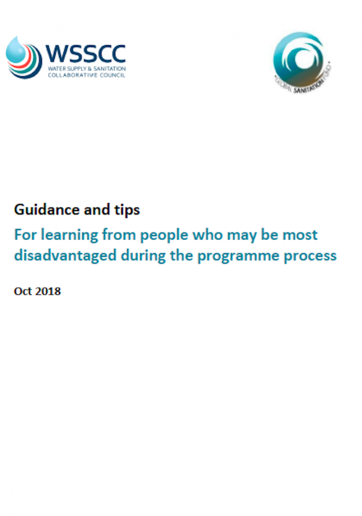 A practical guide for the Global Sanitation Fund (GSF) supported programme teams and Community Led Total Sanitation (CLTS) facilitators on how to collect information related to Equality and Non-Discrimination (EQND) at community level, and in particular to learn from people who may be disadvantaged. This guide provides insights into the key ethics principles for information gathering and documentation, offers practical qualitative learning and participatory tools, […]
