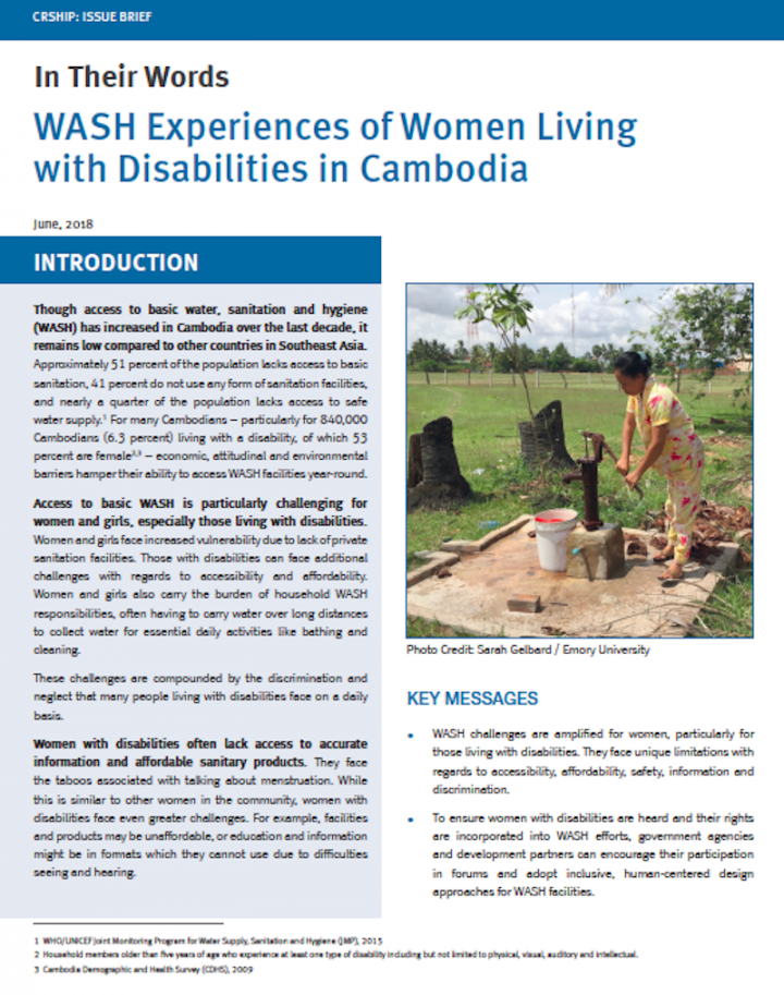 There is limited documented information about the WASH experiences of women with disabilities in Cambodia. It is critical to listen to their voices in order to better shape programs and policies, and begin challenging discriminatory attitudes. Greater participation is the first step to ensuring that women with disabilities can access the facilities, services, and products to manage their WASH needs effectively, safely, and with dignity. […]