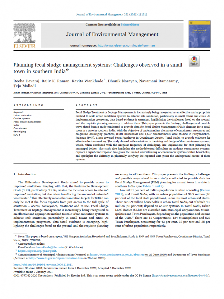 Fecal Sludge Treatment or Septage Management is increasingly being recognised as an effective and appropriate method to scale urban sanitation systems to achieve safe sanitation, particularly in small towns and cities. As implementation progresses, data-based evidence is emerging, highlighting the challenges faced on the ground, and the requisite planning necessary to address them. This paper presents the findings, challenges and possible ways ahead from a […]