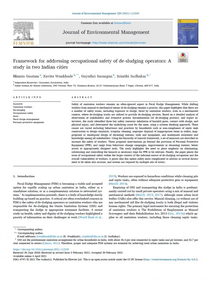 Safety of sanitation workers remains an often-ignored aspect in Fecal Sludge Management. While shifting workers from manual to mechanical means of de-sludging remains a priority, this paper highlights that there are a number of safety issues, including exposure to sludge, faced by sanitation workers, even in a mechanised context, where de-sludging trucks are utilised to provide de-sludging services. Based on a detailed analysis of observation […]
