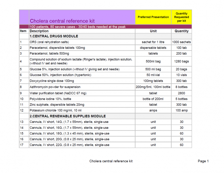 In 2016 WHO introduced the Cholera Kits. These kits replace the Interagency Diarrhoeal Disease Kit (IDDK) which had been used for many years. The Cholera Kit is designed to be flexible and adaptable for preparedness and outbreak response in different contexts. The overall Cholera Kit is made up of an Investigation Kit, Laboratory materials, 3 Treatment Kits (community, periphery and central) and a Hardware Kit. […]