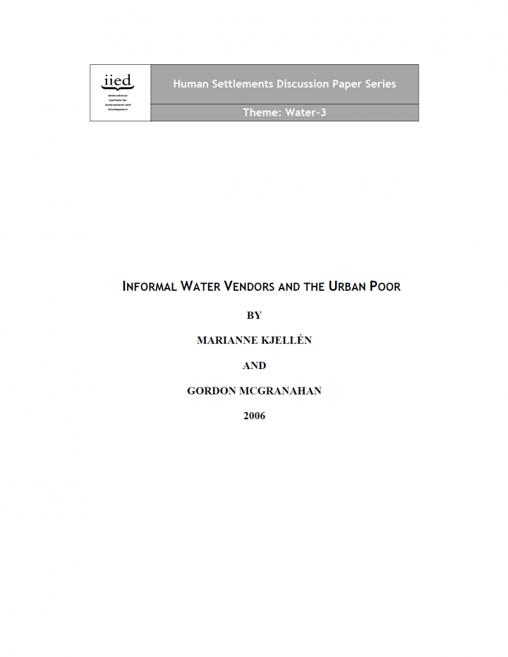 Water vending is probably as old as human society and trade, but in recent centuries it has been overshadowed by the expansion of networked piped systems. Water vending is now often taken as a symptom of a failure in these piped systems, which still provide water to only a minority of urban dwellers in many parts of the world. When collecting international statistics on access […]