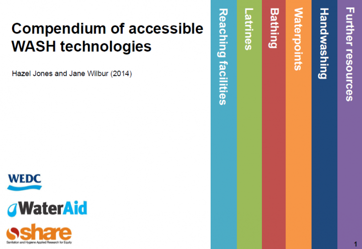 This compendium presents low-cost technologies to improve the accessibility of household water, sanitation and hygiene (WASH) facilities. It is designed for use by people working directly with communities in rural areas of Sub-Saharan Africa, including health workers and community volunteers. Most of the ideas are designed to ensure access for disabled and older people, but are suitable for anyone who may have difficulty using standard facilities. […]