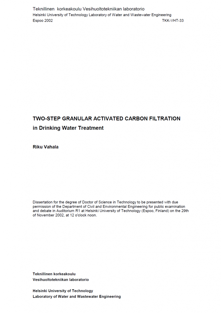 In the treatment of Finnish surface waters, the main objective is to reduce natural organic matter (NOM) before the water is disinfected. In many treatment plants, granular activated carbon (GAC) filtration is applied for the enhanced removal of NOM after conventional treatment. The aim of this study was to assess the performance of two-step GAC filtration in NOM removal from cold humic lake water and […]