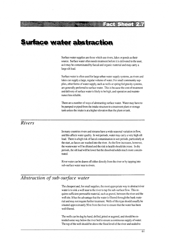 A factsheet about surface water abstraction, its sources and maintenance tasks.