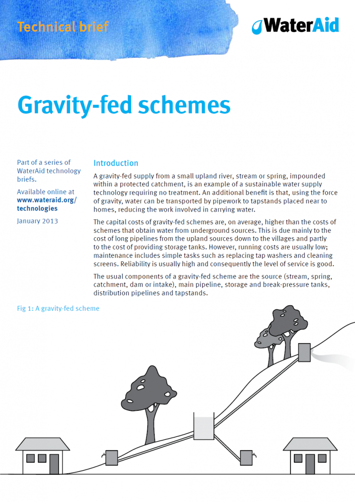 A gravity-fed supply from a small upland river, stream or spring, impounded within a protected catchment, is an example of a sustainable water supply technology requiring no treatment. An additional benefit is that, using the force of gravity, water can be transported by pipework to tapstands placed near to homes, reducing the work involved in carrying water. The capital costs of gravity-fed schemes are, on average, […]