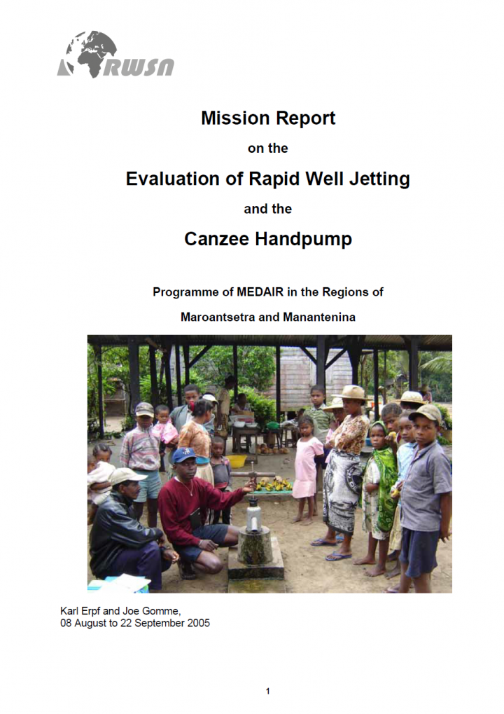 The evaluation reviewed the MEDAIR project in rural areas around Maroantsetra. Shallow boreholes were drilled using a technique of rapid well jetting. Canzee pumps were installed and users were trained in maintenance.