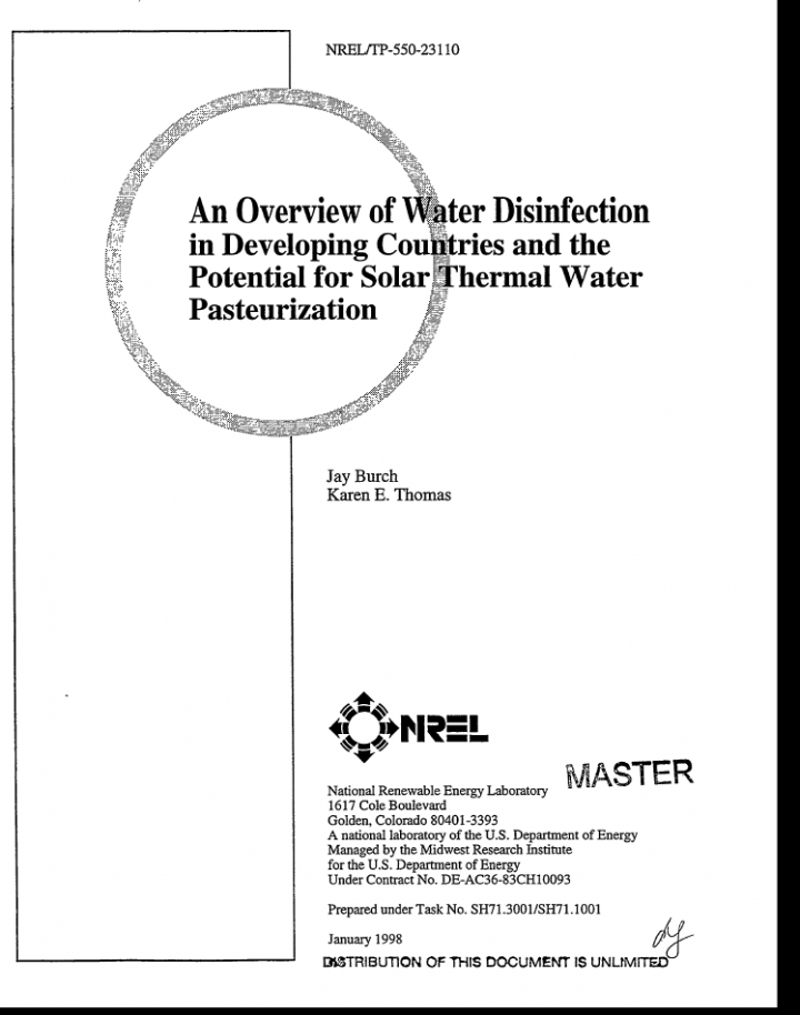 This study originated within the Solar Buildings Program at the U.S. Department of Energy. Its goal is to assess the potential for solar thennal water disinfection in developing countries. In order to assess solar thennal potential, the alternatives must be clearly understood and compared. The objectives of the study are to: a) characterize the developing world disinfection needs and market; b) identify competing technologies, both traditional and emerging; c) […]