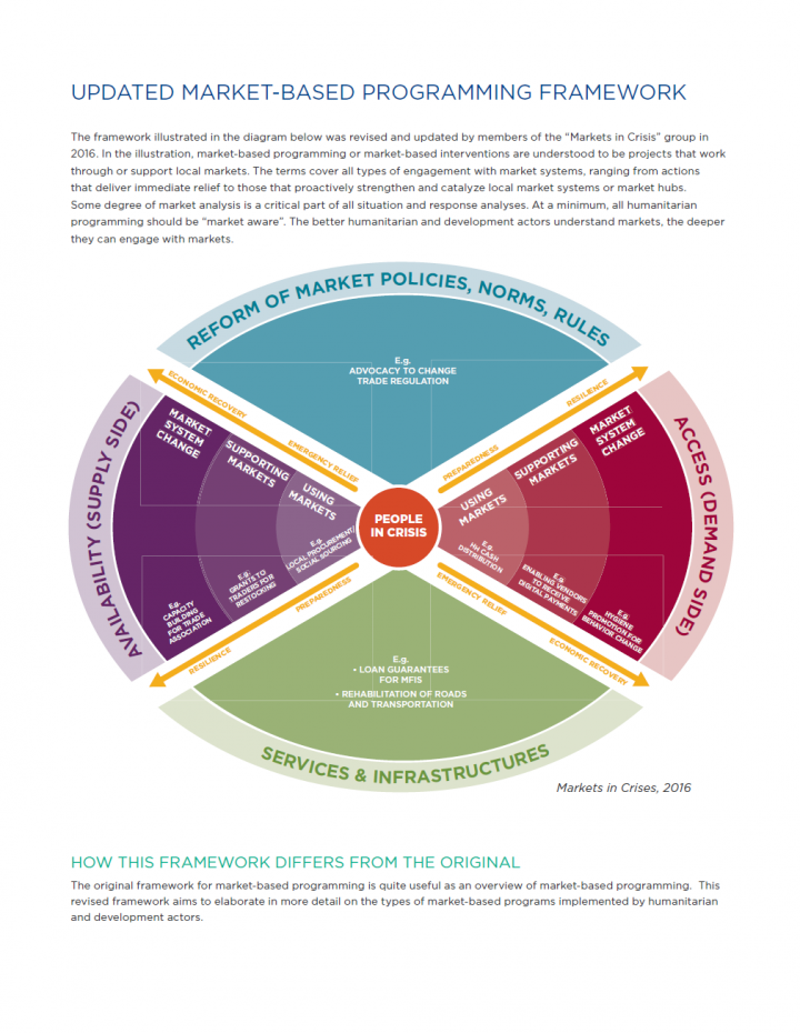 The original framework for market-based programming is quite useful as an overview of market-based programming. This revised framework aims to elaborate in more detail on the types of market-based programs implemented by humanitarian and development actors.