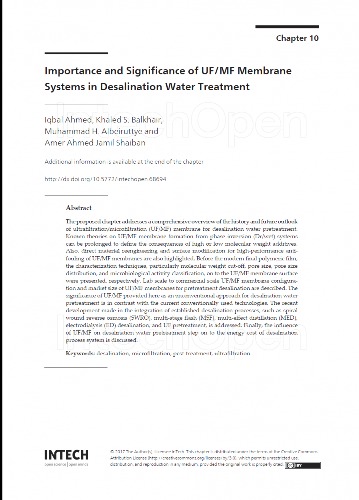 The proposed chapter addresses a comprehensive overview of the history and future outlook of ultrafiltration/microfiltration (UF/MF) membrane for desalination water pretreatment. Known theories on UF/MF membrane formation from phase inversion (Dr/wet) systems can be prolonged to define the consequences of high or low molecular weight additives. Also, direct material reengineering and surface modification for high-performance anti-fouling of UF/MF membranes are also highlighted. Before the modern […]