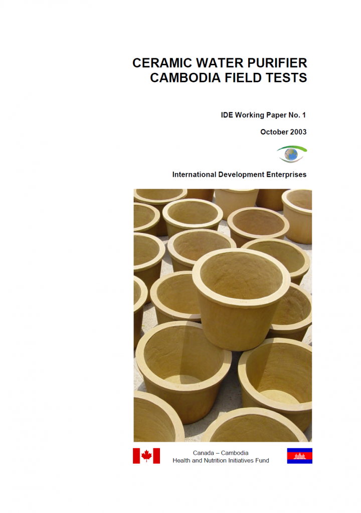 This report summarizes results from a year-long pilot project in Cambodia to test the Ceramic Water Purifier, a low-cost household water treatment technology that removes microbiological contamination at the point of use. The pilot project was conducted by International Development Enterprises (IDE) with financial assistance from the Health and Nutrition Initiatives Fund supported by the Canadian International Development Agency (CIDA). The Ceramic Water Purifier (CWP) consists […]