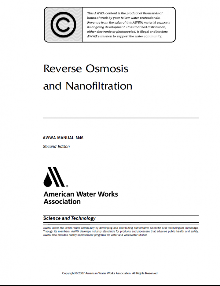 This publication provides a general introduction to the reverse osmosis (RO) and nanofiltration (NF) membrane treatment processes. The subjects addressed in this chapter should serve as the basic foundation for a broader understanding of RO and NF processes as applied to potable water, industrial process water, tertiary wastewater, and reclaimed water treatment, and include a general overview of the technology (i.e., types of processes, history […]