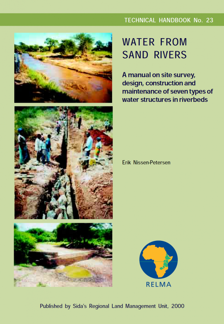 This manual is intended for technicians, builders, trainers, students and development agencies dealing with site survey, design, construction and maintenance of: -Hand-dug wells in deep sand, -River-intakes with shaft in riverbank, -Intake chambers with elevated water tank, -Subsurface dams built of soil, -Subsurface dams built of rubble stone masonry and -Sand dams built of rubble stone masonry. The manual is the first of a series of manuals covering: -Water from sand rivers, -Water from rock […]