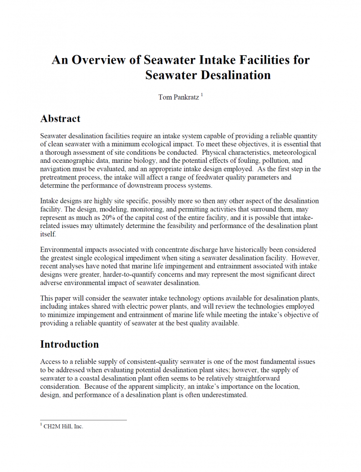 Seawater desalination facilities require an intake system capable of providing a reliable quantity of clean seawater with a minimum ecological impact. To meet these objectives, it is essential that a thorough assessment of site conditions be conducted. Physical characteristics, meteorological and oceanographic data, marine biology, and the potential effects of fouling, pollution, and navigation must be evaluated, and an appropriate intake design employed. As the […]