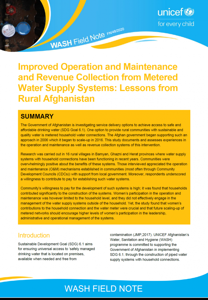 The Government of Afghanistan is investigating service delivery options to achieve access to safe and affordable drinking water (SDG Goal 6.1). One option to provide rural communities with sustainable and quality water is metered household water connections. The Afghan government began supporting such an approach in 2006 which it began to scale-up in 2016. This study documents and assesses experiences in the operation and maintenance […]