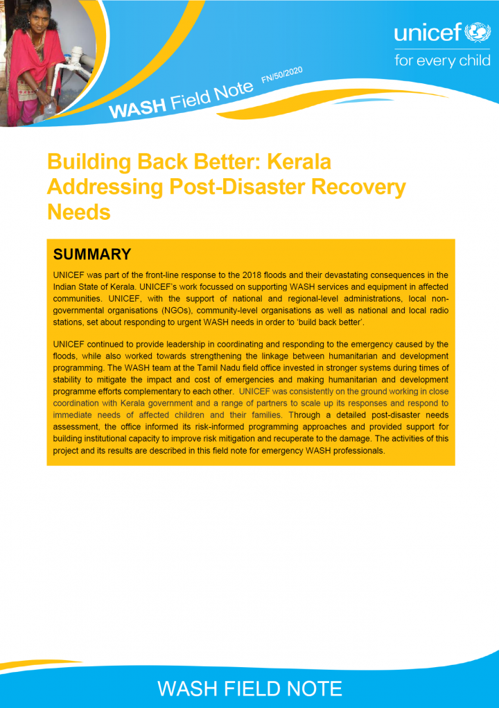UNICEF was part of the front-line response to the 2018 floods and their devastating consequences in the Indian State of Kerala. UNICEF’s work focussed on supporting WASH services and equipment in affected communities. UNICEF, with the support of national and regional-level administrations, local non-governmental organisations (NGOs), community-level organisations as well as national and local radio stations, set about responding to urgent WASH needs in order […]