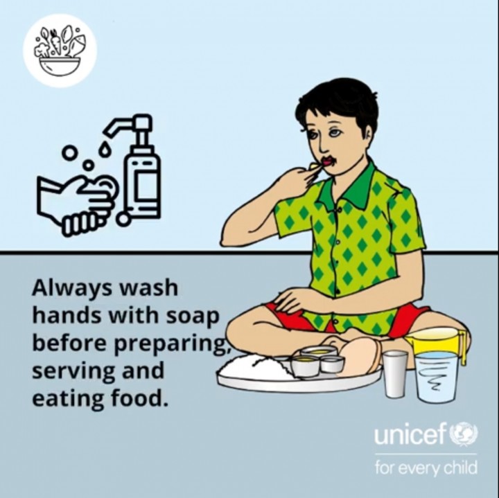 This one-minute video from UNICEF describes how to make and keep food safe from contamination to guard against diarrhoeal disease.