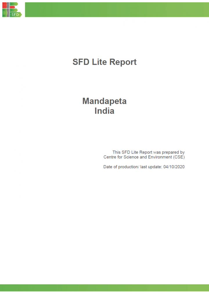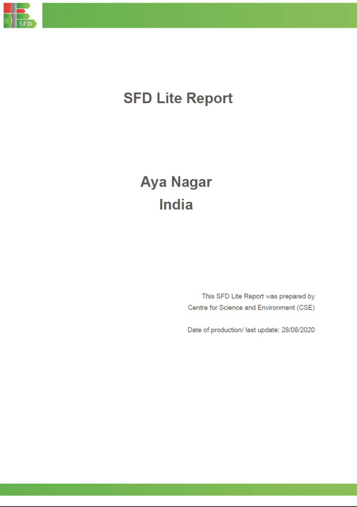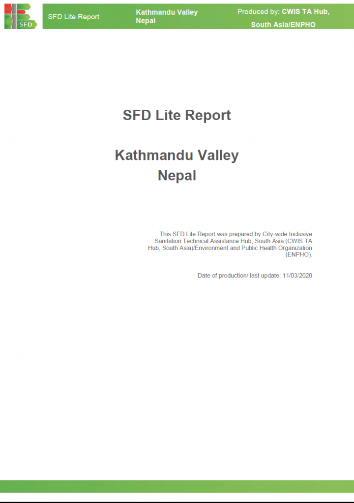 An excreta flow diagram (also often described as shit flow diagram, SFD) presents a clear picture of the outcome arising from wastewater and faecal sludge management practices and services in a city or town. This is expressed in terms of the percentage of the population. An accompanying report describes the service delivery context of the city or town.