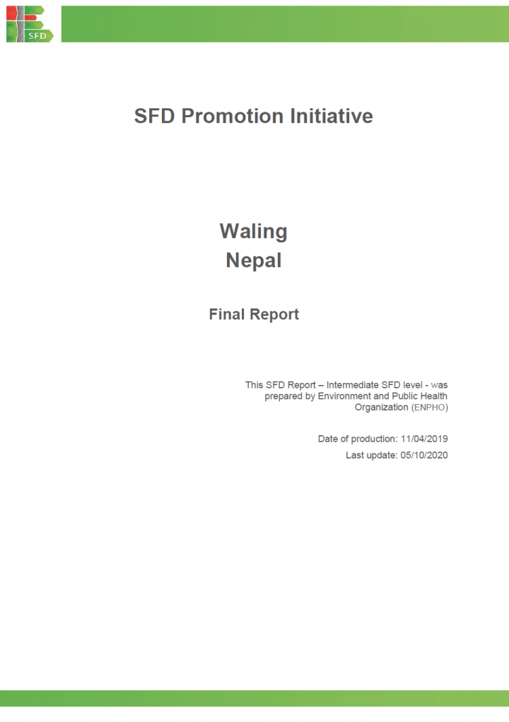Waling municipality, established in 2053 BS (1997 AD), lies in Syangja district within Gandaki Province of Nepal. The municipality is located within latitude 28° 3 '2.412'' North to 27° 55' 26.58'' North and longitude 83° 41' 36.852'' East to 83° 50' 18.456'' East. This SFD Report was produced on 11/04/2019 and last updated on 05/10/2020.