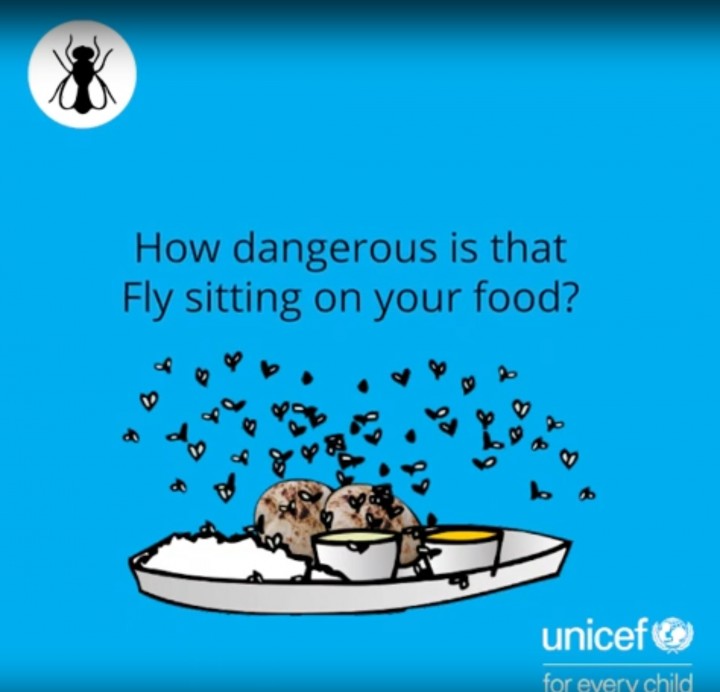 This one minute video by UNICEF explains how flies are vectors of disease and carry germs from faeces to the home in a simple manner.