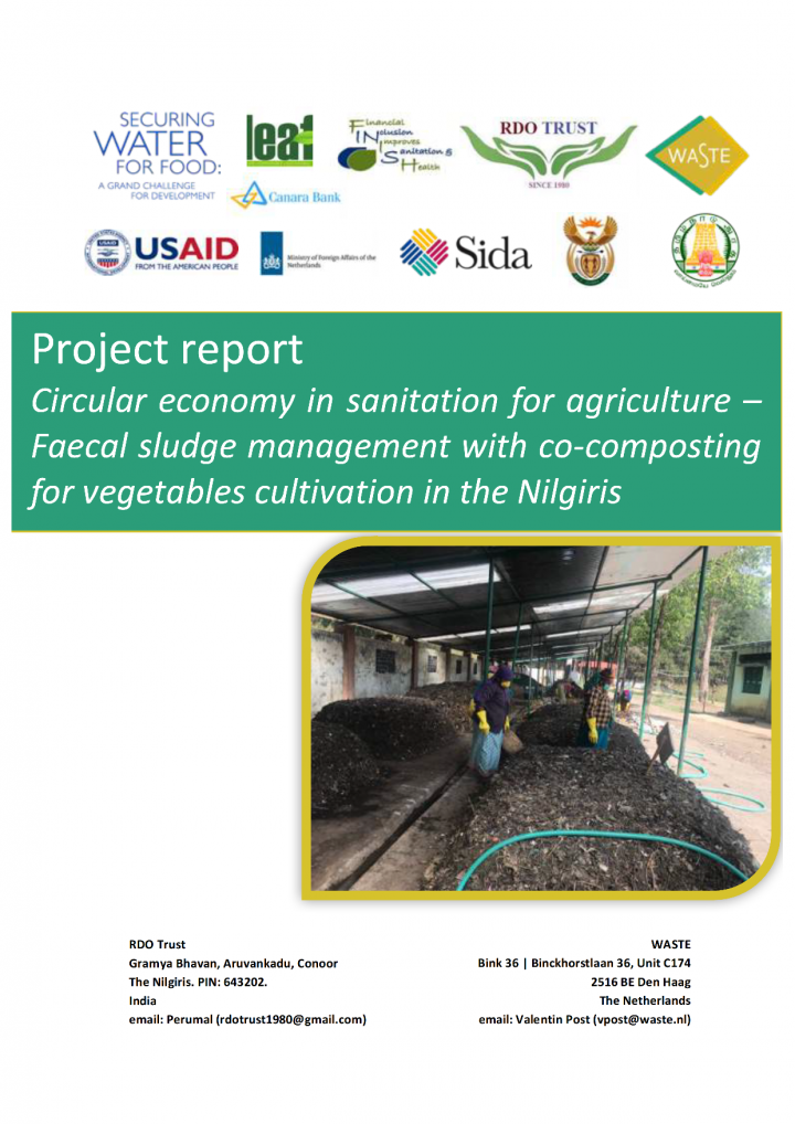 This report presents results of the project 'Circular economy in sanitation for agriculture – Faecal sludge management with cocomposting for vegetables cultivation in the Nilgiris', which started in 2017 and is funded under the Securing Water for Food programme and the FINISH Mondial programme.