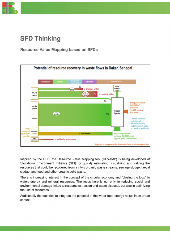 Inspired by the SFD, the Resource Value Mapping tool (REVAMP) is being developed at Stockholm Environment Initiative (SEI) for quickly estimating, visualizing and valuing the resources that could be recovered from a city’s organic waste streams: sewage sludge, faecal sludge, and food and other organic solid waste. There is increasing interest in the concept of the circular economy and “closing the loop” in water, energy and […]