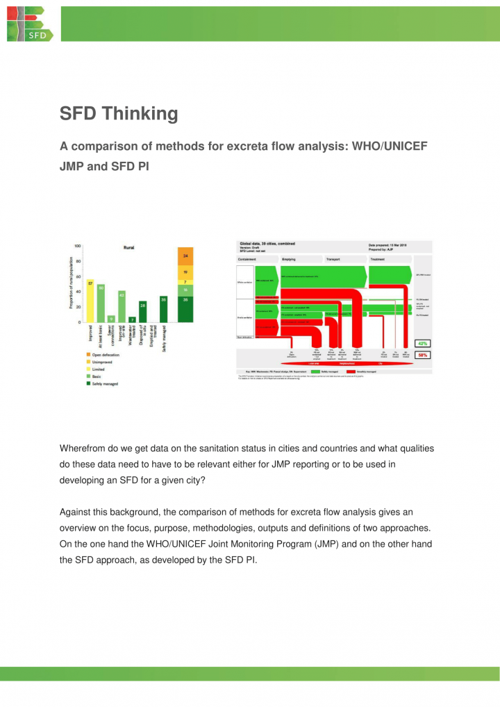 Wherefrom do we get data on the sanitation status in cities and countries and what qualities do these data need to have to be relevant either for JMP reporting or to be used in developing an SFD for a given city? Against this background, the comparison of methods for excreta flow analysis gives an overview on the focus, purpose, methodologies, outputs and definitions of two […]