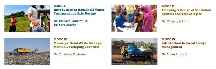 The MOOC series “Sanitation, Water and Solid Waste for Development” is an open-access eLearning program of Sandec/Eawag. It consists of four courses, which have reached more than 80'000 participants. The courses are available for free and constantly running on the learning platform Coursera. All video lectures are also on YouTube. Please find further information on the webpage given below.
