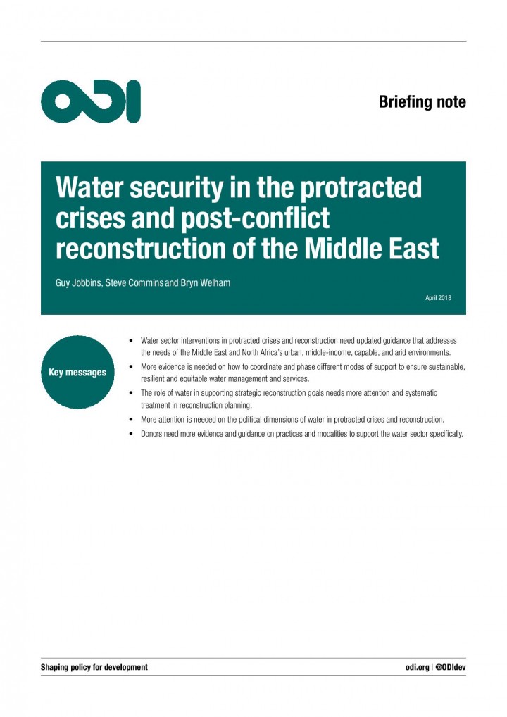 This background paper focuses on supporting sustainable, equitable and resilient water services over the short and long term during protracted crises and for post-crisis reconstruction in the Middle East and North Africa (MENA).