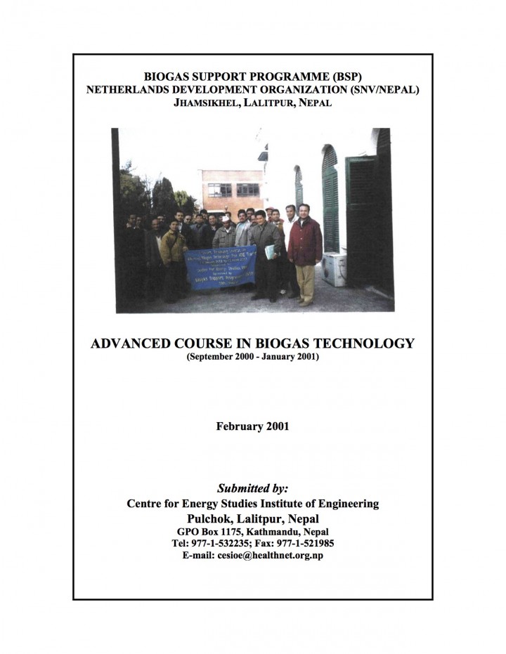 SNV/BSP had organized a biogas training course from 17 to 20 May 2000 for the trainers of Junior Biogas Technicians (JBT) of the Institute of Engineering (IOE), Pokhara with the participation of 16 trainees having engineering background (Engineers and Overseers). The training was rated very useful. Subsequently, with support from SNV/BSP, Centre of Energy Studies (CES) of the Institute of Engineering (IOE), Tribhuwan University felt […]