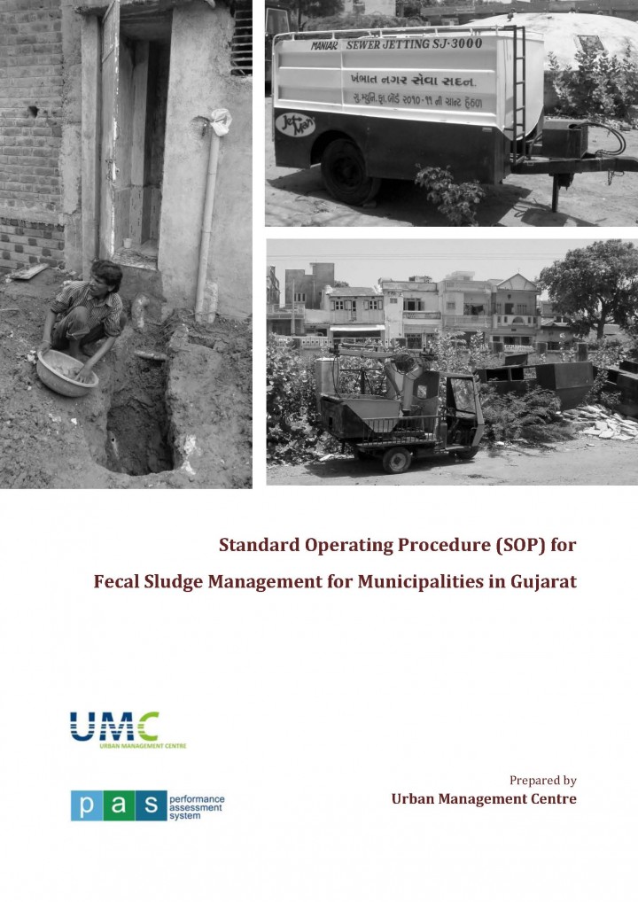 This Standard Operating Procedure (SOP) is a step-by-step guide for ULBs to institute a framework for on-site sanitation system management. This SOP conforms to the advisory note on septage management released by MoUD and draws from UMC’s experience of working with ULBs in Gujarat. It provides a set of written instructions on septic tank construction, cleaning and maintenance and disposal of sludge in a concise format. […]