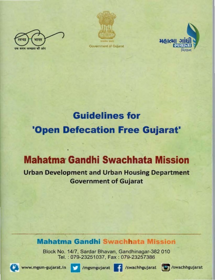 This guideline is a ready reckoner for Urban Local Bodies of Gujarat to achieve Open Defecation Free cities/towns. The document has been prepared based on the National guidelines of Swachh Bharat Mission (Urban). The document highlights strategies for achieving OD free settlements include but are not limited to: 1. Ensuring adequacy of toilets –individual and public toilets and Effective operations and maintenance of public toilets 2. […]