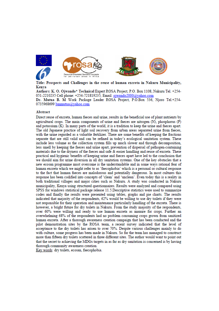 Two ecosan workshops in Kenya, "ecosan Capacity Development Workshop" in Ugunja and "ecosan Vision workshop" in Nairobi, were organised and financed by the GTZ Program on sustainable sanitation - ecosan and the facilitating consultants Laura Kraft (freelance), Martin Wafler, Johannes Heeb (both seecon gmbh, Switzerland) and Ms. Pradnya Thakur (Ecosan Services Foundation, India). The main aim was to bring together sanitation and ecosan experts from […]