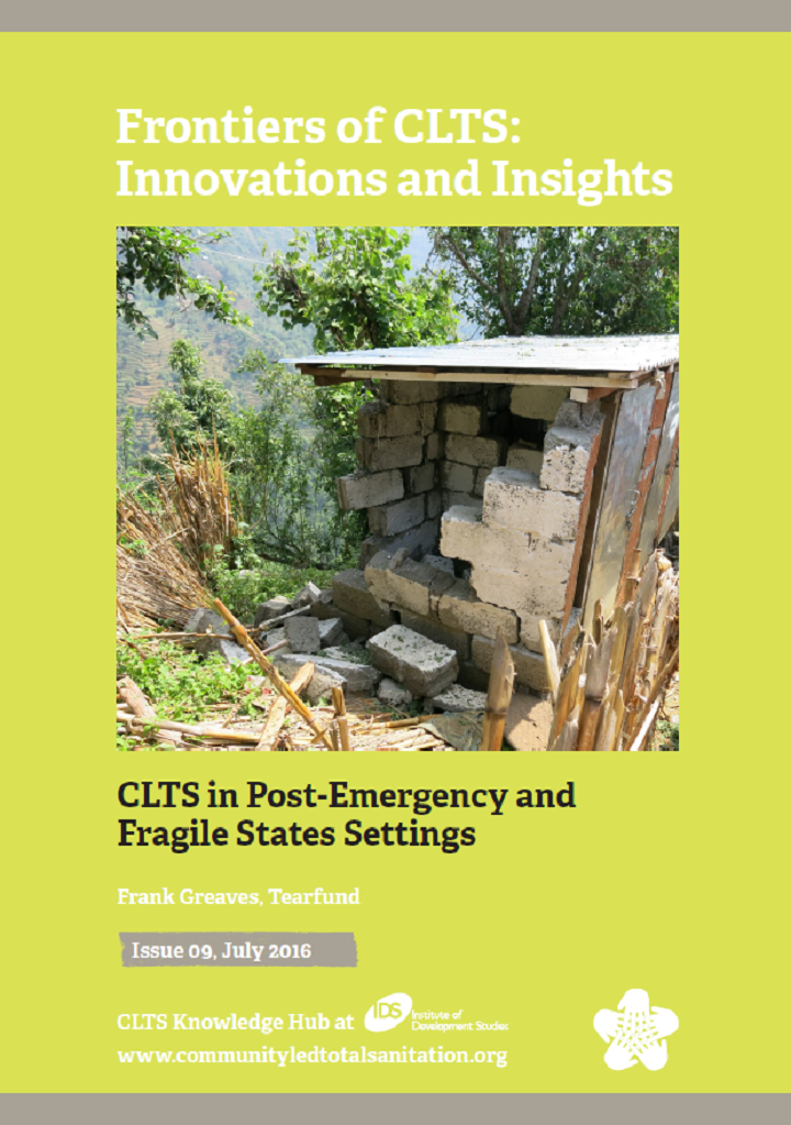 This issue of Frontiers of CLTS draws on the experiences of relief and development agencies which have facilitated CLTS in post-emergency and FCAS contexts. Its purpose is to contribute to understanding, and distil learning and guidance around the application of CLTS in these situations. It explores the question: How, when, and in what circumstances can a CLTSstyle process of analysis, action, and collective behaviour change […]