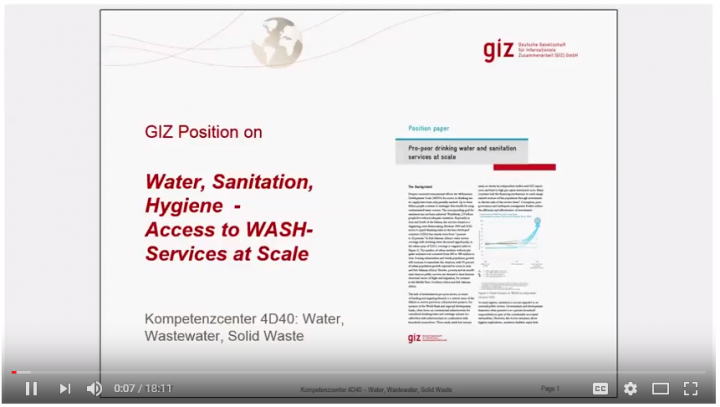 This 20 minute webinar provides an overview of the GIZ Position on Scaling up Access to Water, Sanitation and Hygiene. It highlights global and regional challenges and barriers for the expansion of access, and outlines recommendations for GIZ programmes and their partners.