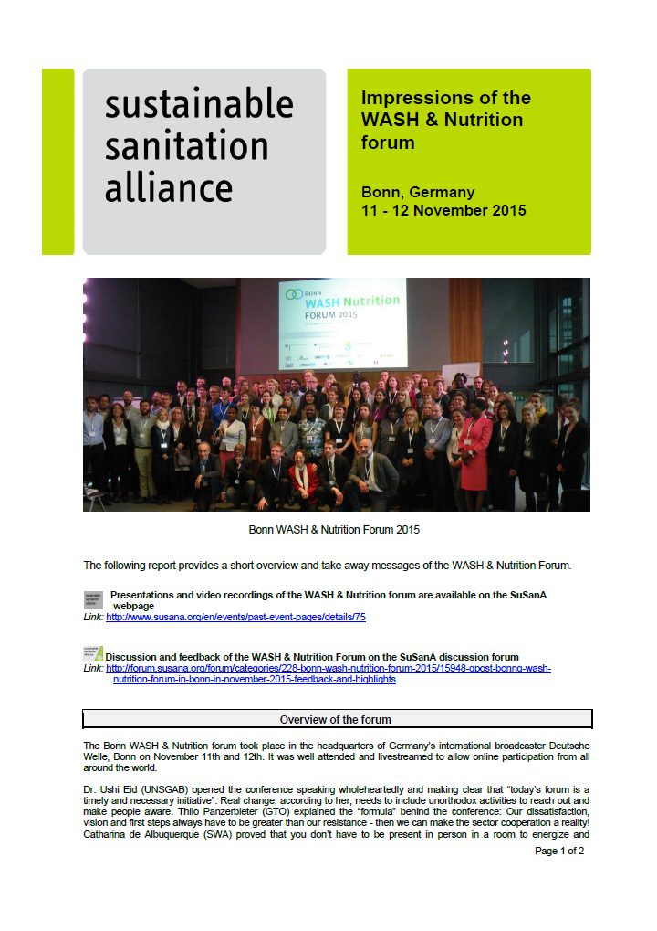 High-level experts from the sanitation and nutrition sector gathered together in the headquarter of Germany’s international broadcaster Deutsche Welle, Bonn for the WASH and Nutrition Forum on November 11th and 12th to discuss strategies for integrating WASH and nutrition programming in development and humanitarian contexts.