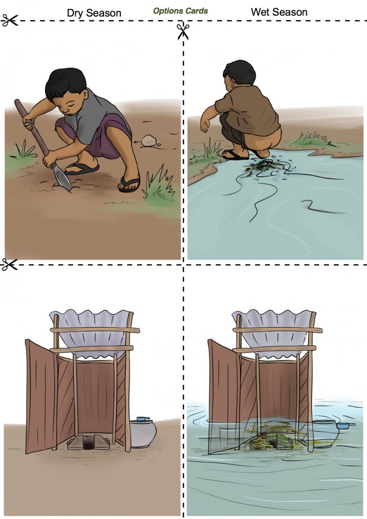 The Sanitation Steps for Flood-Prone Areas is a fun and interactive game that helps people living in flood-prone areas identify appropriate options to improve sanitation in their community. This activity was developed by Engineers Without Borders Australia (EWB) and CAWST. The document includes activity cards and facilitator instructions.