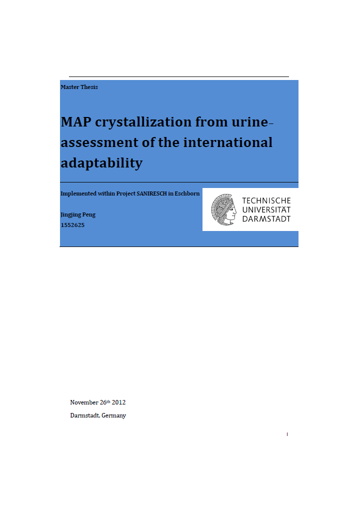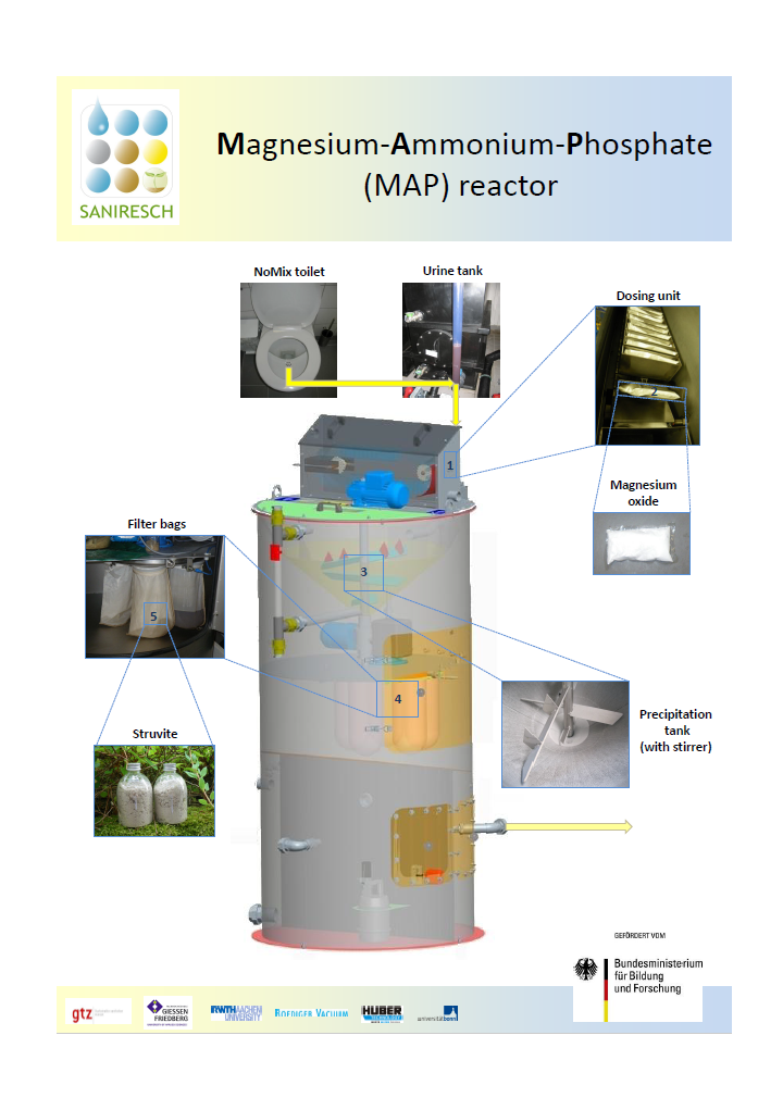 The analysis of the international adaptability of the three treatment systems a Magnesium-Ammonium-Phosphate (MAP) precipitation reactor and two membrane bioreactors (MBRs) treating the grey- and brownwater, designed for and used within the SANIRESCH project specifically focused on developing countries. The aim was to identify regions and typical situations that are suitable for the implementation of such systems. Additionally, adaptations required for running the treatment plants successfully […]