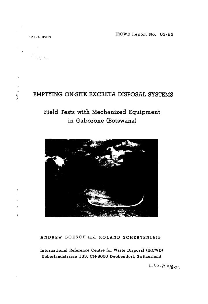 This report describes field tests of three prototype pit latrine emptying systems, a hand operated diaphgram pump and two vacuum tankers in regular service in Africa. Numerous sludge samples were taken and their viscosities and compositions measured to establish limits for the types of sludges that can be removed by each system.