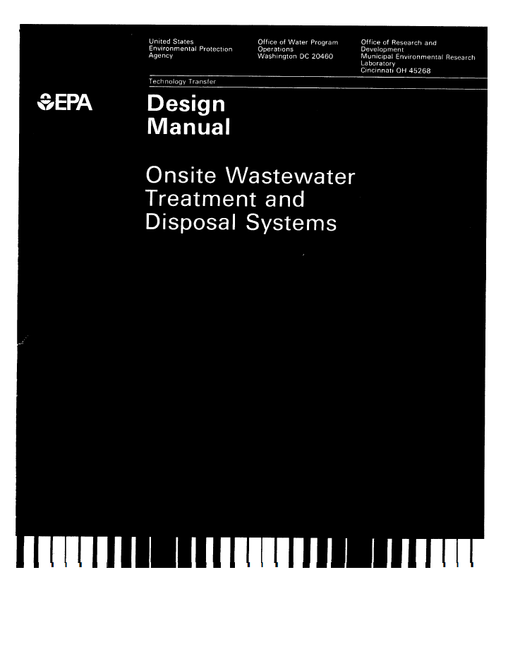 This document provides information on generic types of onsi te wastewater treatment and disposal systems. It contains neither standards for those systems nor rules and regulations pertaining to onsite systems. The design information presented herein is intended as technical guidance reflective of sound, professional practice. The intended audience for the manual includes those involved in the design, construction, operation, maintenance, and regulation of onsite systems.