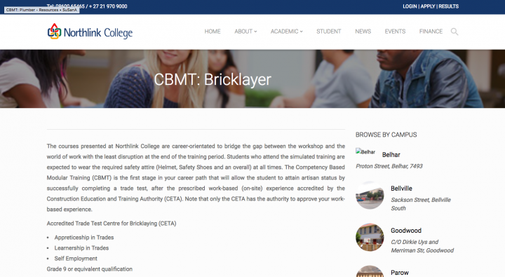 The courses presented at Northlink College are career-orientated to bridge the gap between the workshop and the world of work with the least disruption at the end of the training period. Students who attend the simulated training are expected to wear the required safety attire (Helmet, Safety Shoes and an overall) at all times. The Competency Based Modular Training (CBMT) is the first stage in […]