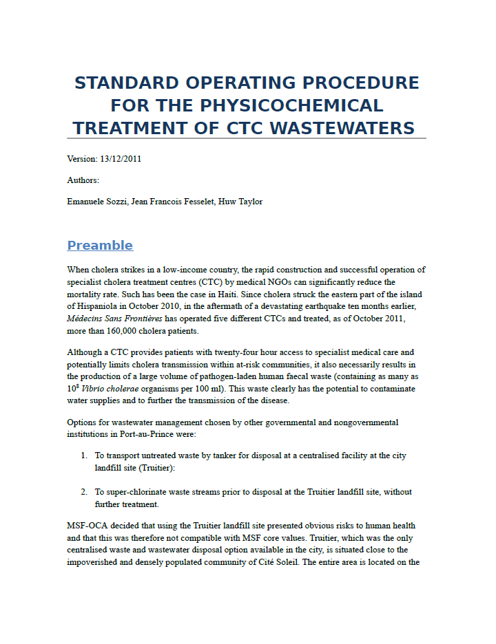 When cholera strikes in a low-income country, the rapid construction and successful operation of specialist cholera treatment centres (CTC) by medical NGOs can significantly reduce the mortality rate. Such has been the case in Haiti. Since cholera struck the eastern part of the island of Hispaniola in October 2010, in the aftermath of a devastating earthquake ten months earlier, Médecins Sans Frontières has operated five […]