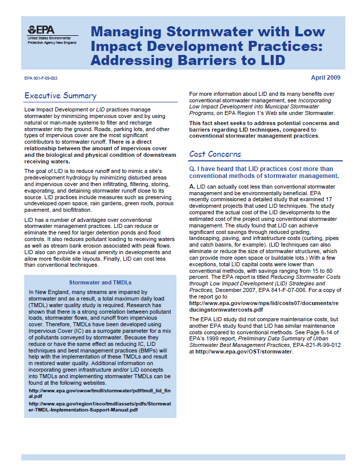 This fact sheet seeks to address potential concerns and barriers regarding LID techniques, compared to conventional stormwater management practices.