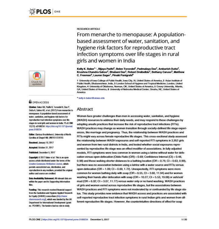 Women face greater challenges than men in accessing water, sanitation, and hygiene (WASH) resources to address their daily needs, and may respond to these challenges by adopting unsafe practices that increase the risk of reproductive tract infections (RTIs). WASH practices may change as women transition through socially-defined life stage experiences, like marriage and pregnancy. Thus, the relationship between WASH practices and RTIs might vary across […]