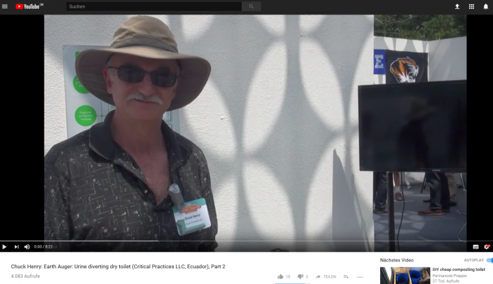 The goal of this project was to develop several prototypes of a mechanised, pedal-operated, low-cost, easy-to-use, odourless urine-diverting dry toilet (UDDT). Chuck was interviewed by Elisabeth von Muench on 22 March 2014 at Taj Palace Hotel in Delhi, India. Filmed by Arno Rosemarin (SEI) during the "Reinvent the Toilet Fair".