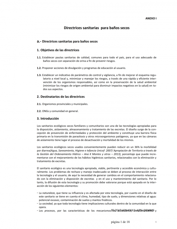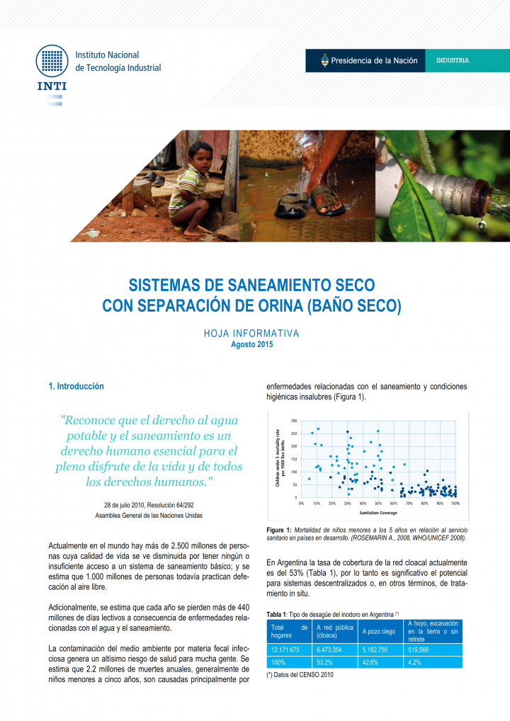 Establecer pautas sanitarias de calidad, comunes para todo el país, para el uso adecuado de baños secos con separación de orina a fin de prevenir riesgos.