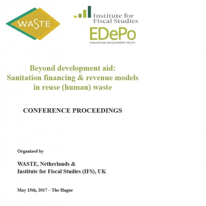 The Institute for Fiscal Studies, in collaboration with WASTE, organized the conference “Beyond Development Aid: Sanitation Financing & Revenue Models in Reuse (human) Waste” in The Hague, Netherlands, the 15th of May 2017. This conference brought together from different parts of the world; academics, practicioners and policymakers with the aim to generate knowledge regarding sanitation financing and Revenue models on sludge reuse.